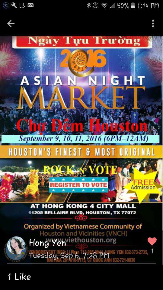 Vội tắt nhạc thật nhanh, rửa mặt và chạy ào ra garage, tôi lái vội đến khu chợ Hồng Kông 4, nơi tổ chức chợ đêm và buổi văn nghệ bỏ túi Rock and Vote cho bác sĩ Cương, nhân dịp ông ra ứng cử dân biểu tiểu bang Texas, địa hạt 149.