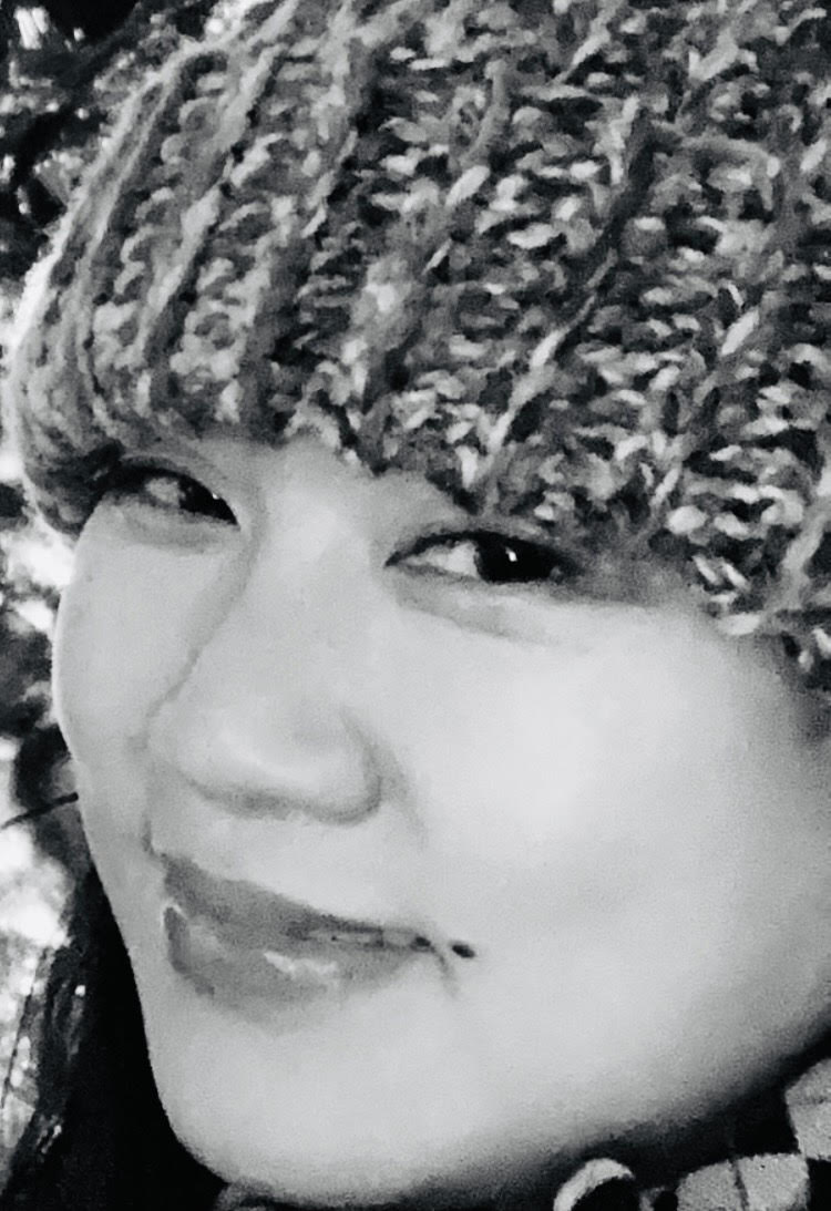 Con Linh đưa tay vén mái tóc, nhỏe miệng cười: