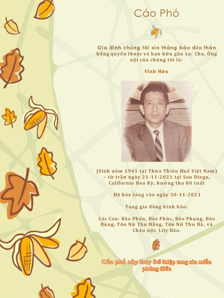 Ba hắn mới mất chiều nay. Hắn nhắm nghiền mắt, cố gắng hình dung người cha chỉ sống bên cạnh hắn chỉ một khoãng ngắn thời thơ ấu. Biến cố 1975 dẫn đến cuộc chia tay của gia đình . Anh em hắn cùng mẹ kẹt lại dưới chế độ cộng sản một thời gian khá dài. Qua Mỹ định cư, dù có gia đình riêng, nhưng một năm dăm ba lần, hai cha con cũng cố gắng gặp nhau hàn huyên tâm sự .